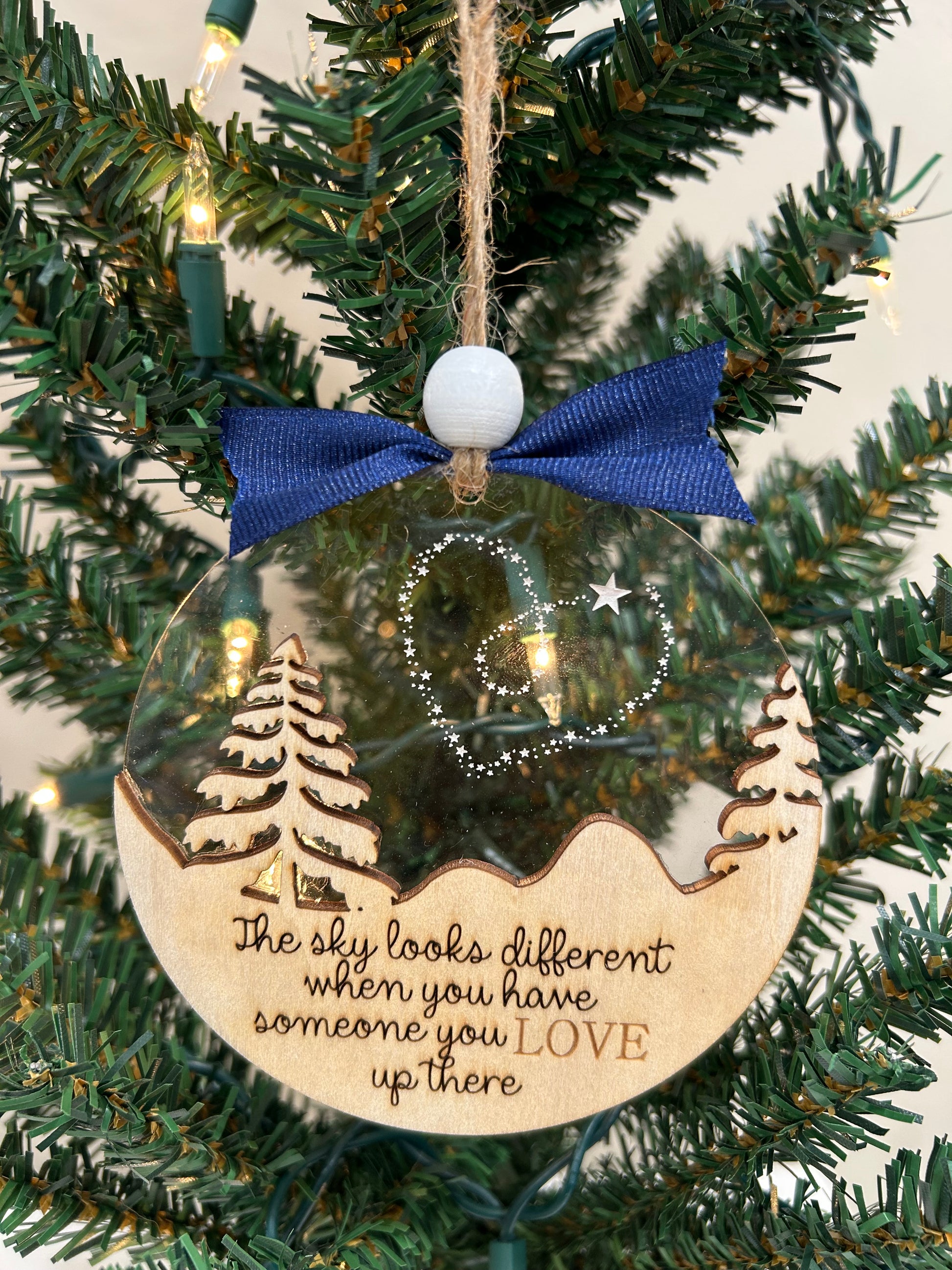 This laser-cut wooden and clear acrylic features a starry night sky with trees and the heartfelt message: “The sky looks different when you have someone you LOVE up there.” It’s a touching memorial keepsake.